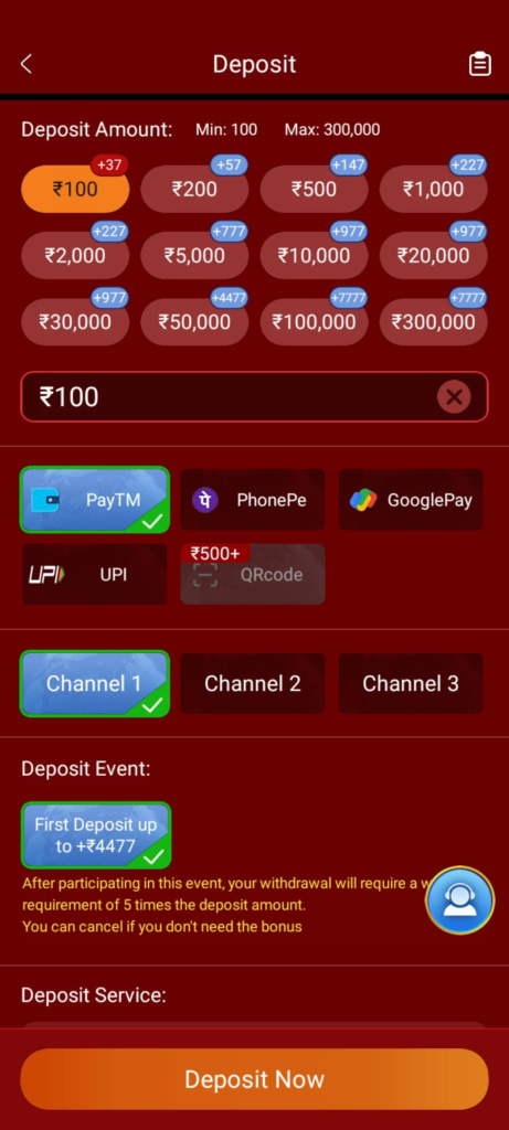 हेलो दोस्तों Download MtGame apk इस एप्लीकेशन में आप अपने मोबाइल फोन से ही पैसा डिपॉजिट कर सकते हैं और वह भी मात्रा ₹100 रुपया फिर आप गेम को खेल सकते हैं | आपका Deposit 2 मिनट के अंदर ही आपके एप्लीकेशन वॉलेट में जॉइंट हो जाएगा फिर आप वहां से गेम में पैसा लगाकर गेम को खेल सकते हैं |