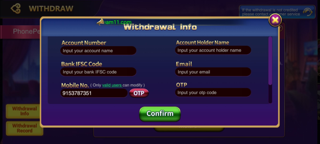 TP ALL DREAM 11 APK में विड्रॉल कैसे करें?